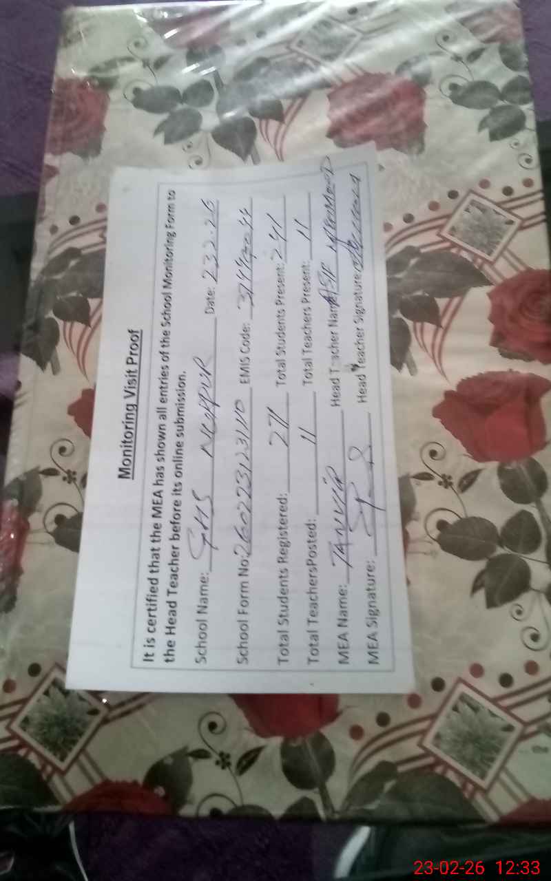 | Attendance Register | Head Teacher | MEA with School | Visit Proof |