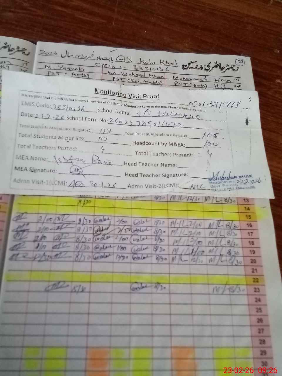 | EMIS Code: 38310136 | Name of School: GPS KALU KHEL | |||