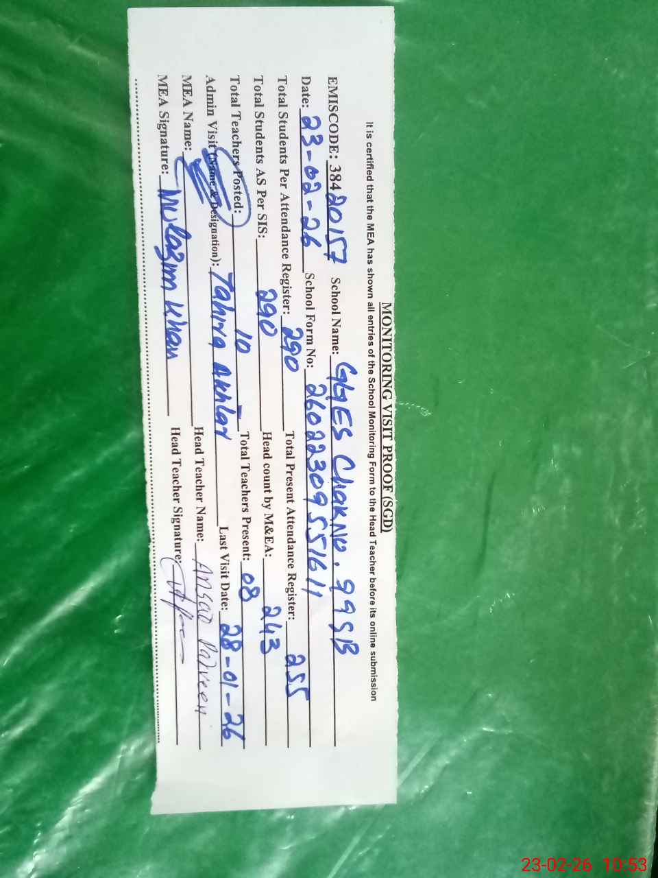 | EMIS Code: 38420157 | Name of School: GGES CHAK NO.99 SB | |||