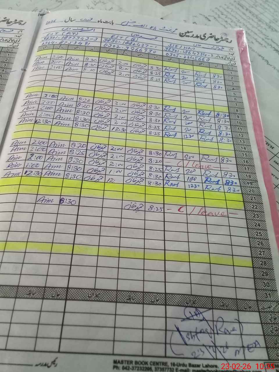 | Name: Ab**** Ra**** Designation: (School Headmaster's/Headmistress's) S S E English Phone/Cell Number: 03**** |