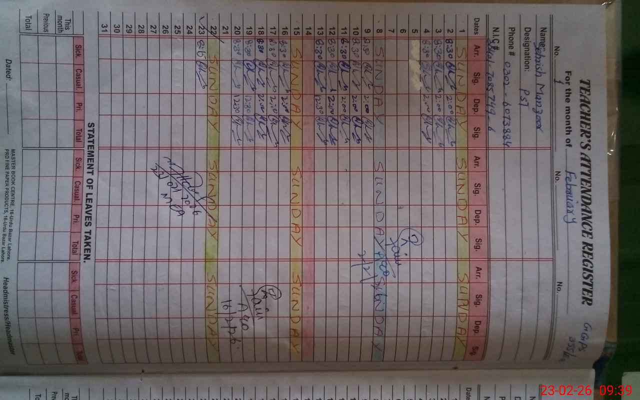 | Attendance Register | Head Teacher | MEA with School | Visit Proof |