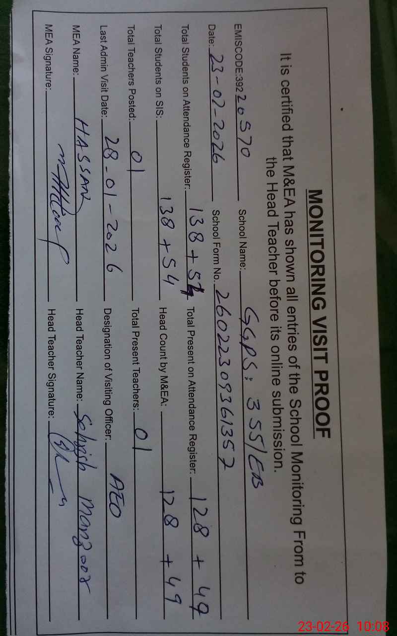 | Certified that this School was Inspected by the Undersigned MEA/DMO Today and the Information Stated Above is as Per Record. | |||||