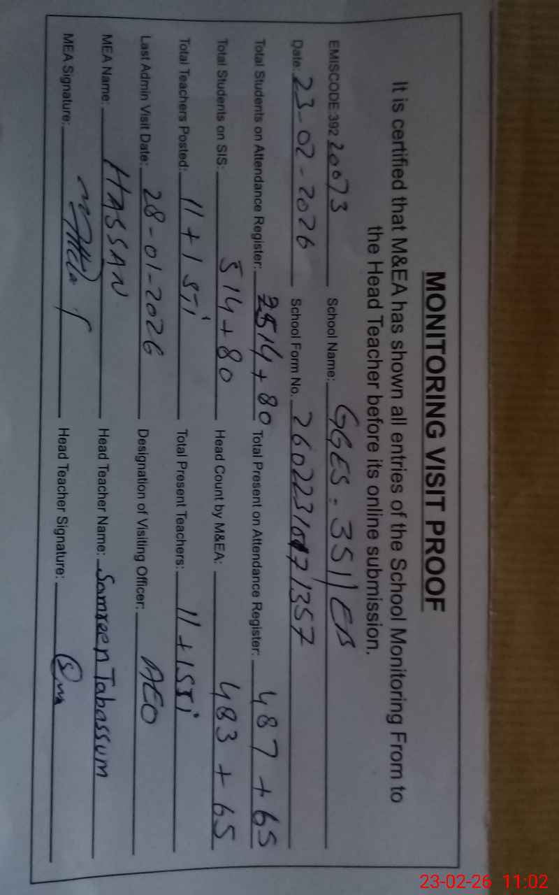 | Certified that this School was Inspected by the Undersigned MEA/DMO Today and the Information Stated Above is as Per Record. | |||||