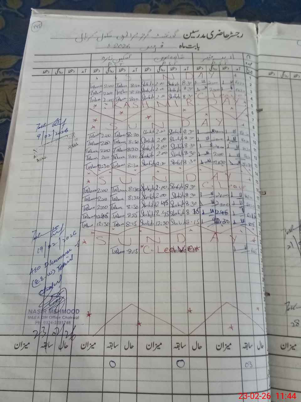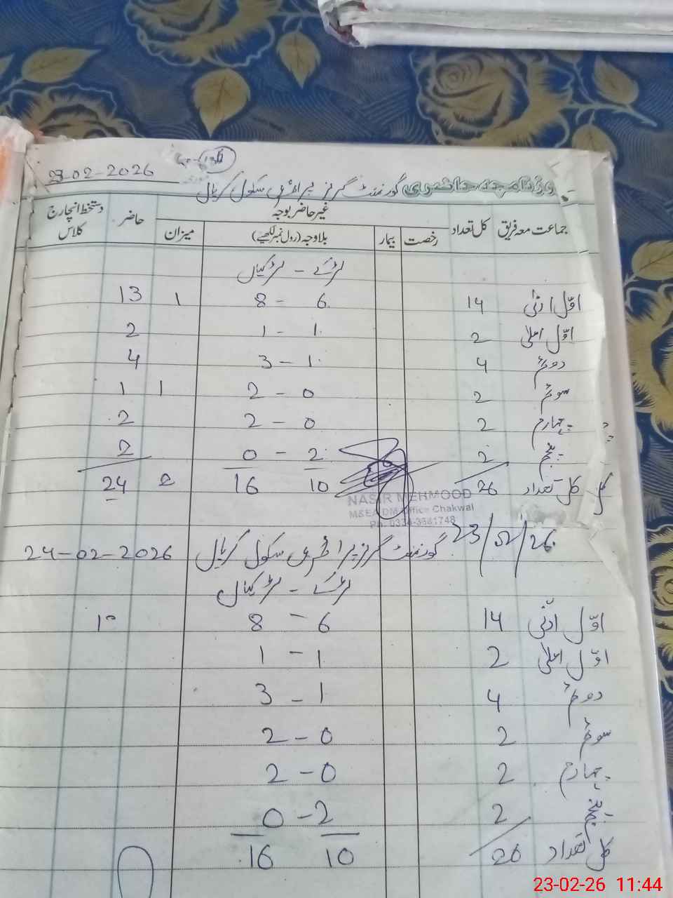 | Name: Ar**** Mu**** Designation: (School Headmaster's/Headmistress's) HEADMISTRESS Phone/Cell Number: 03**** |