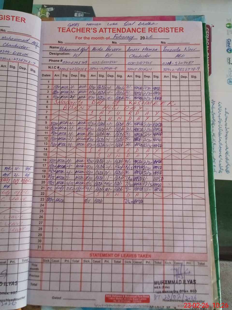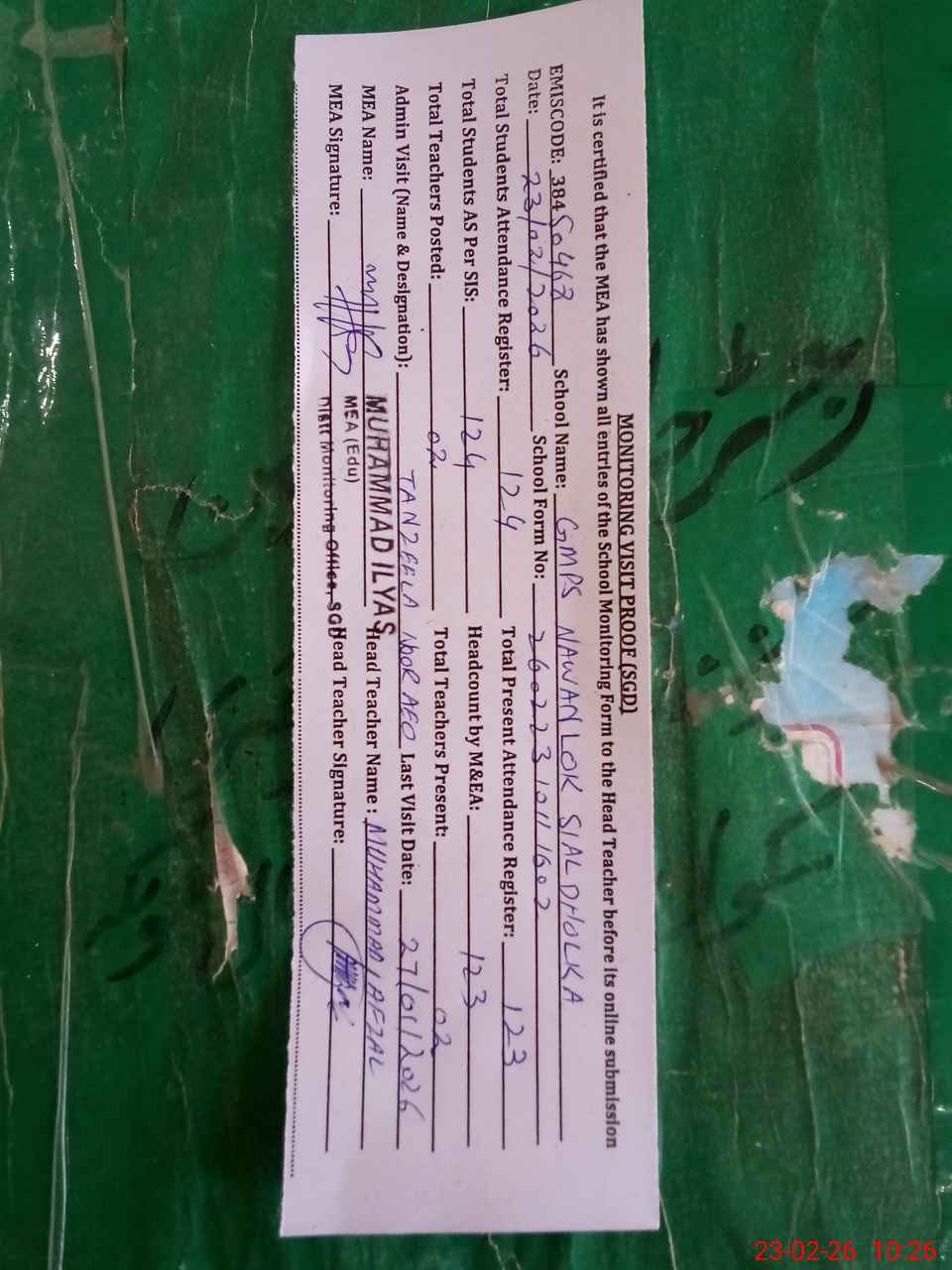 | EMIS Code: 38450468 | Name of School: GMPS NAWAN LOK SIAL DHOLKA | |||