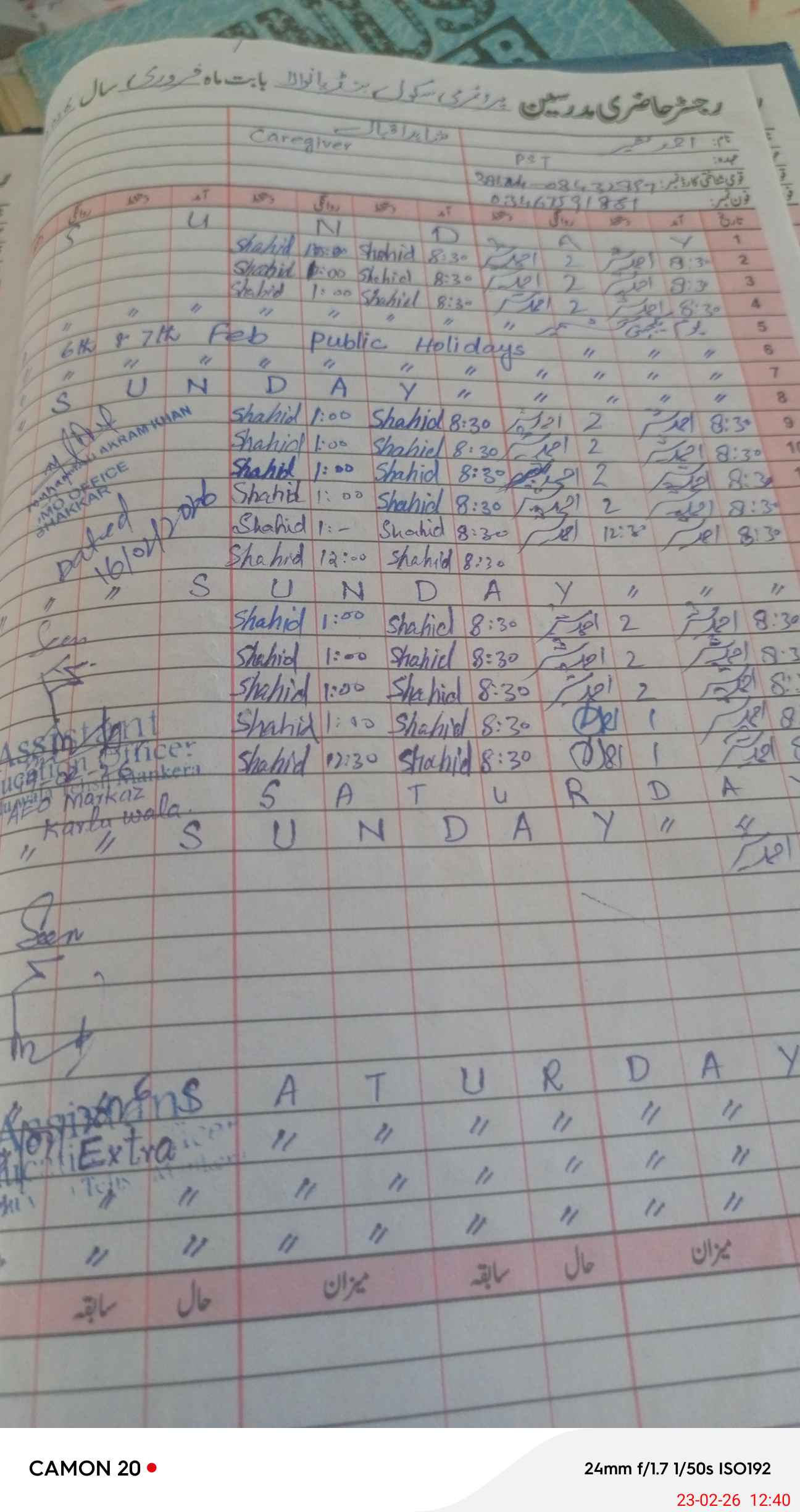 | Name: Za**** Ul**** Designation: (School Headmaster's/Headmistress's) PTC/JV Phone/Cell Number: 03**** |