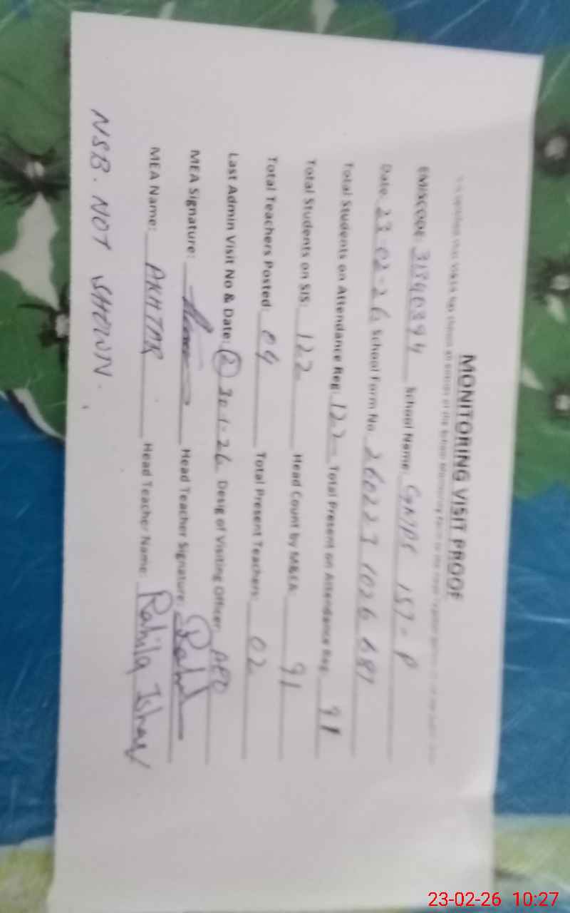 | Monitoring Date: 23-02-2026 | Start Time: 23-02-2026 09:53 AM | End Time: 23-02-2026 10:27 AM | Name of MEA: Ak**** Hu**** Bh**** | |
