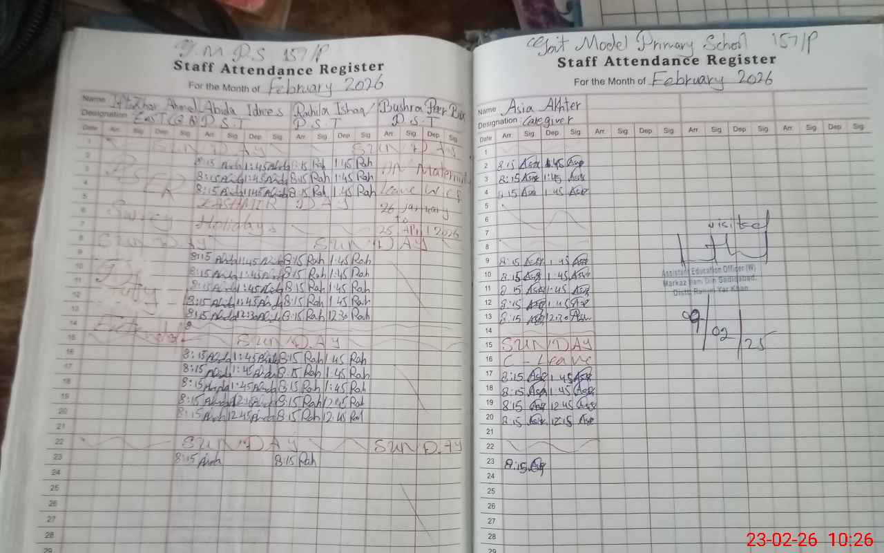 | Attendance Register | Head Teacher | MEA with School | Visit Proof |