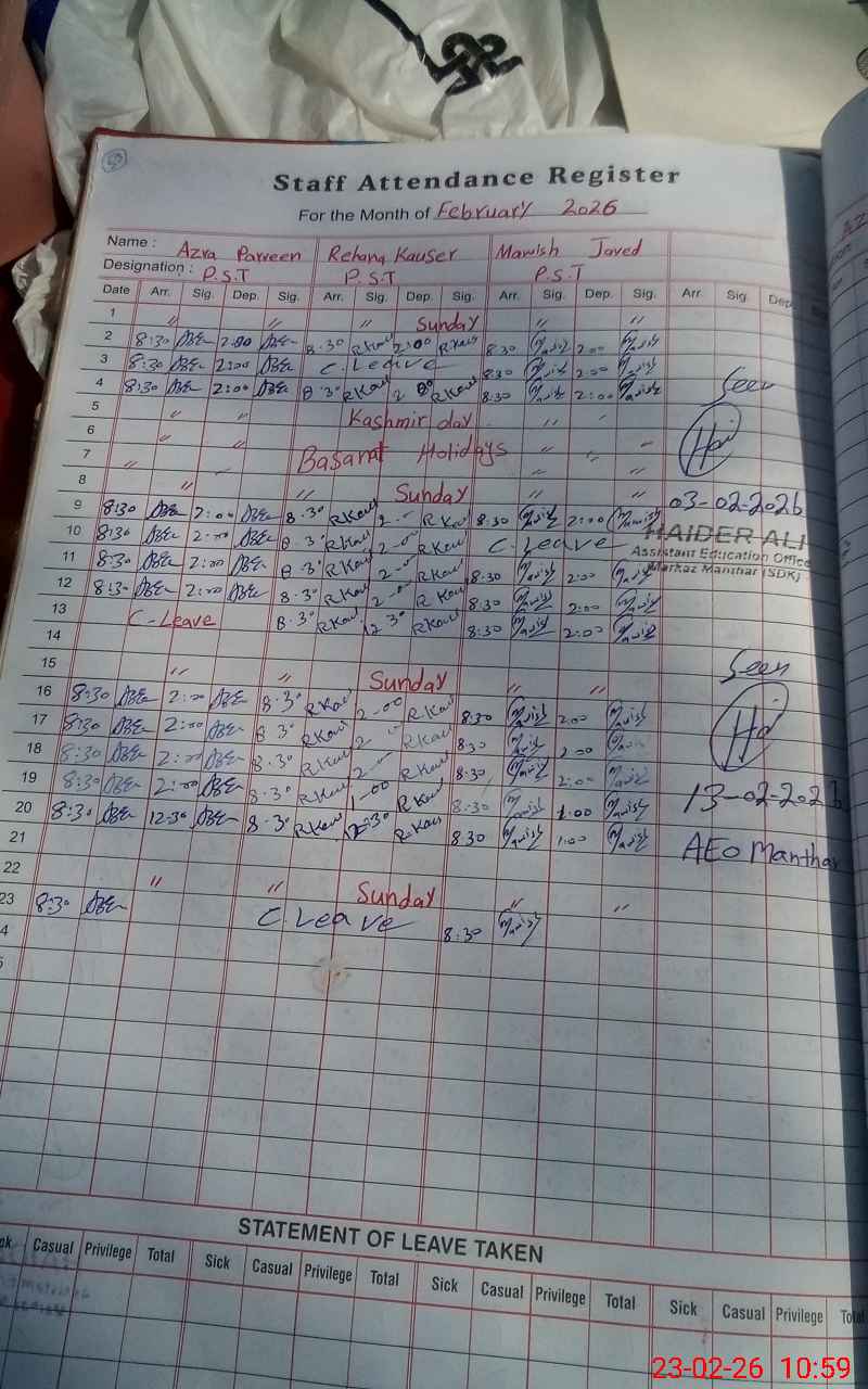 | Name: Az**** Pa**** Designation: (School Headmaster's/Headmistress's) PST Phone/Cell Number: 03**** |