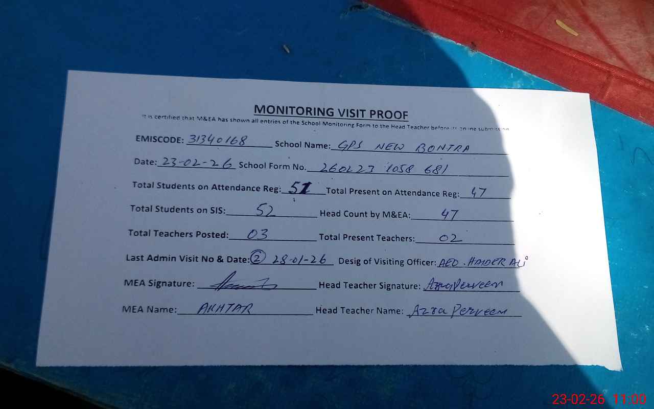 | EMIS Code: 31340168 | Name of School: GPS NEW BONTRA | |||