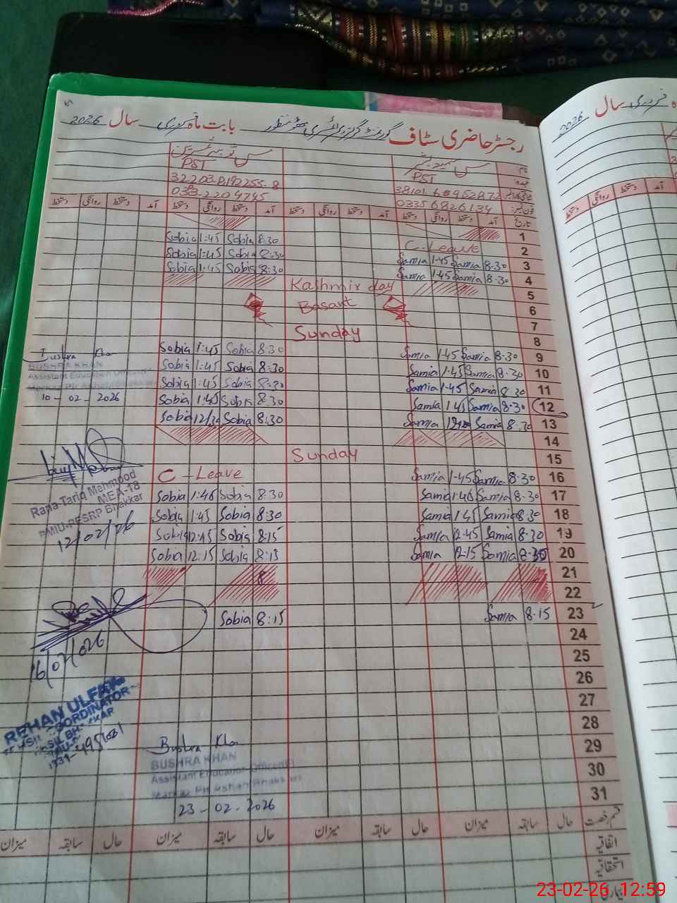 | CNIC | Full Name | Designation | R/C | Absence During Last Calender Month |
