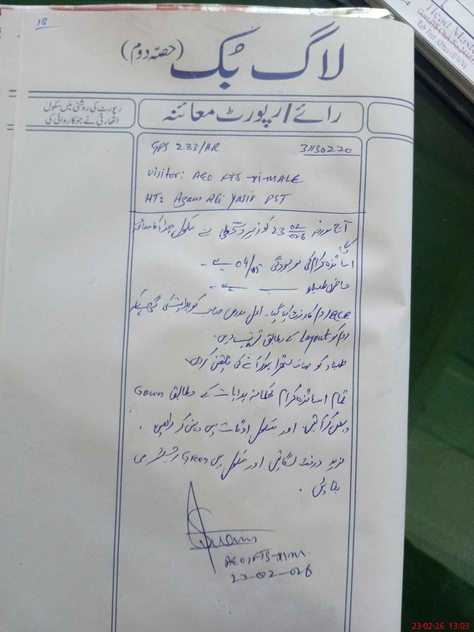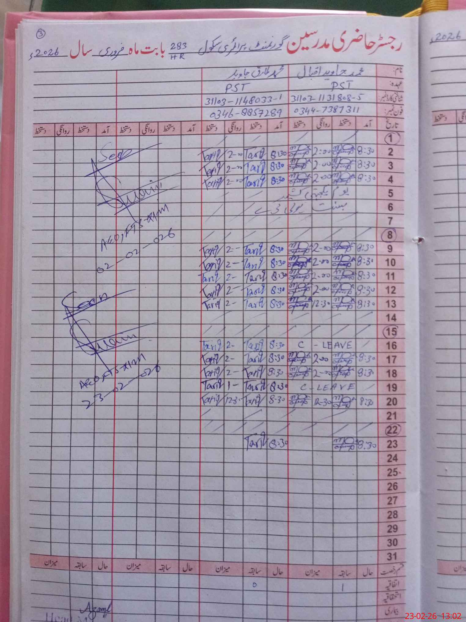 | Name: Az**** Al**** Ya**** Designation: (School Headmaster's/Headmistress's) PST Phone/Cell Number: 03**** |