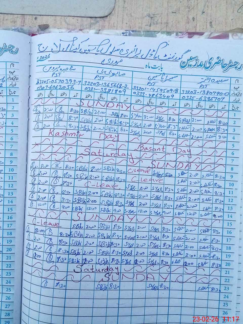 | Name: SA**** AK**** Designation: (School Headmaster's/Headmistress's) PST Phone/Cell Number: 03**** |