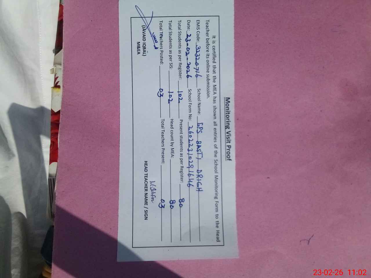 | EMIS Code: 32320716 | Name of School: GPS BASTI DRIGH | |||
