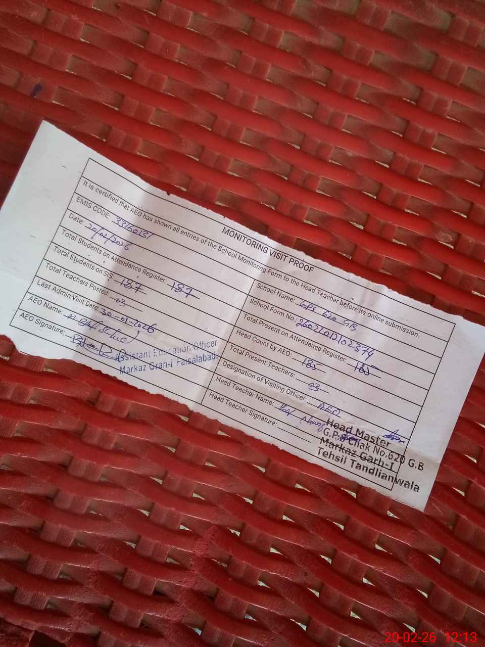 | EMIS Code: 33160131 | Name of School: GPS CHAK 620 GB TANDLIANWALA | |||