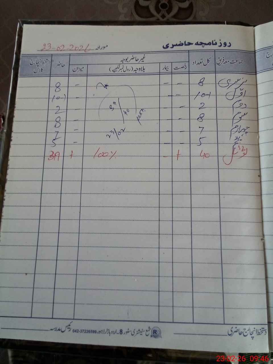 | CNIC | Full Name | Designation | R/C | Absence During Last Calender Month |