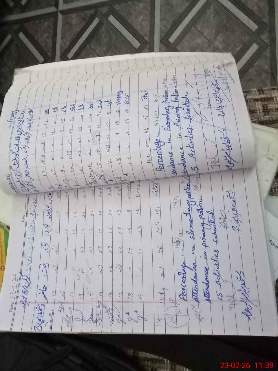 | Attendance Register | Head Teacher | MEA with School | Visit Proof |