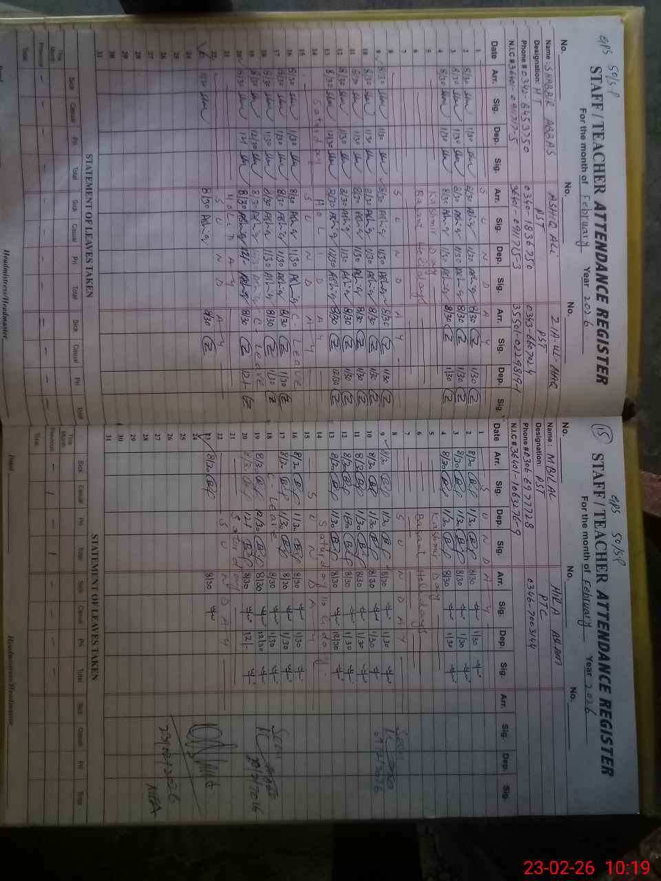 | Name: SH**** AB**** Designation: (School Headmaster's/Headmistress's) PST Phone/Cell Number: 03**** |
