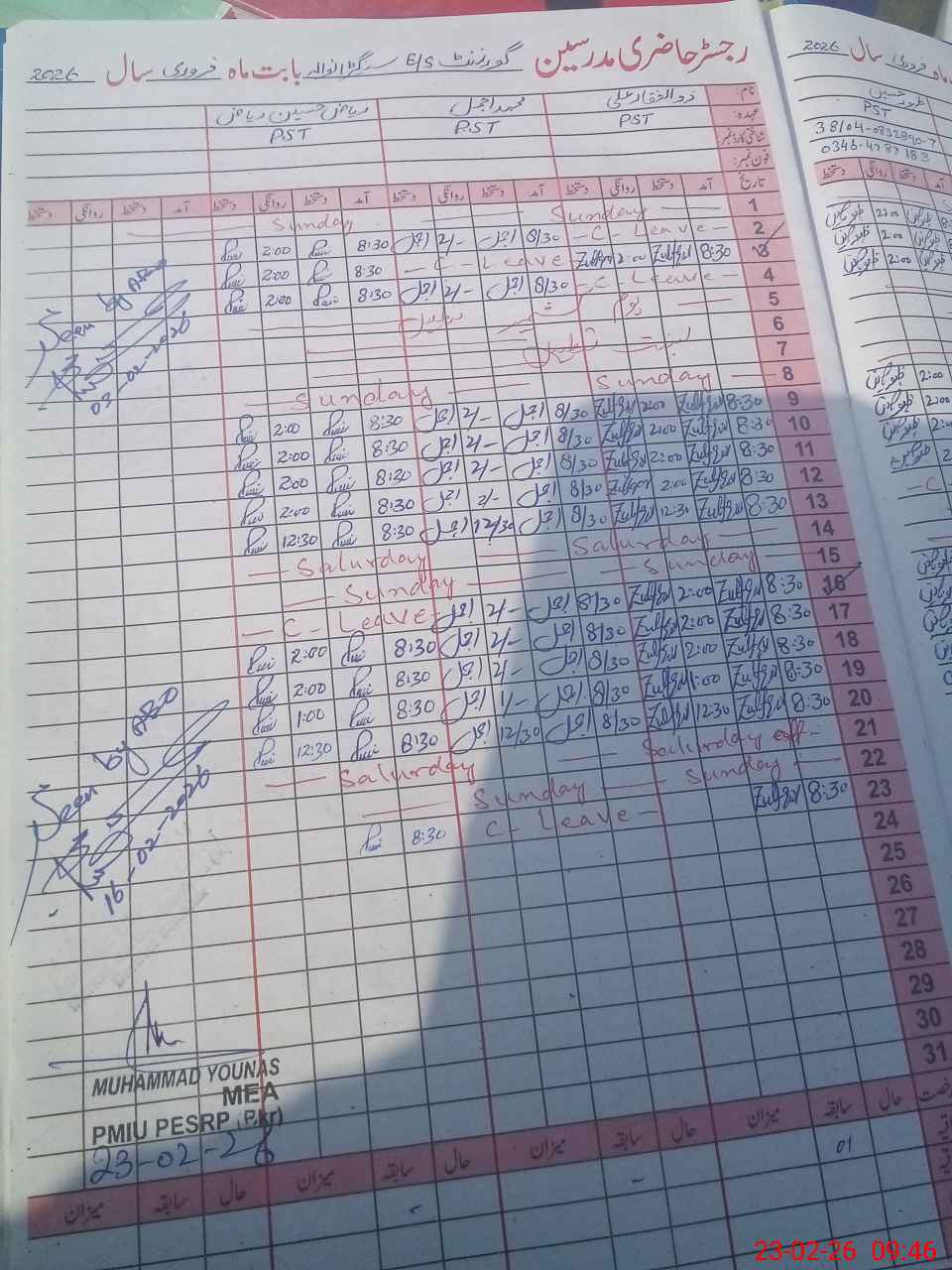 | Name: Mu**** Ra**** Designation: (School Headmaster's/Headmistress's) EST Phone/Cell Number: 03**** |
