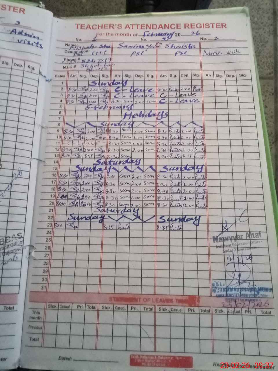 | Name: Mi**** Sh**** Designation: (School Headmaster's/Headmistress's) PST Phone/Cell Number: 03**** |