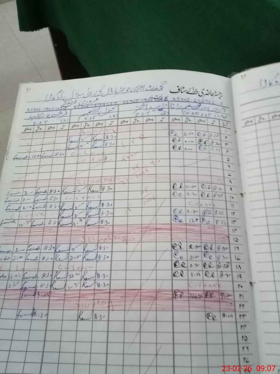 | CNIC | Full Name | Designation | R/C | Absence During Last Calender Month |