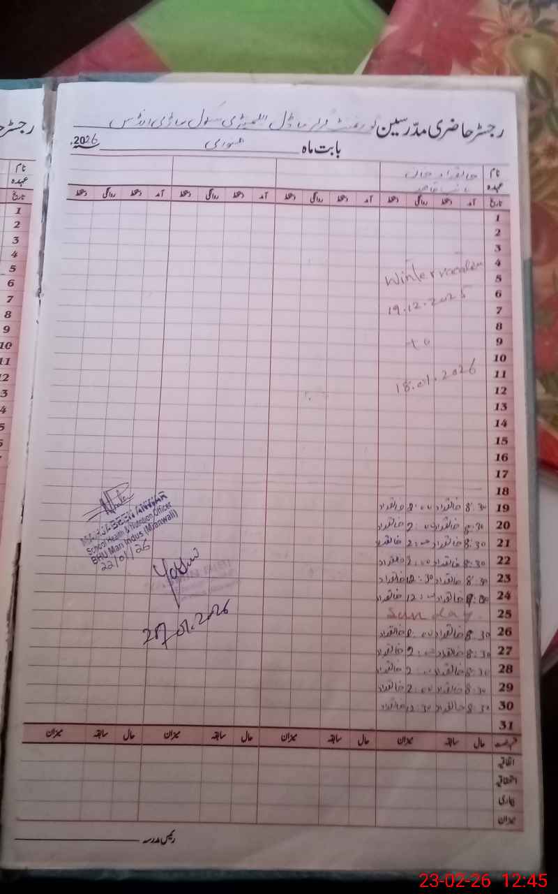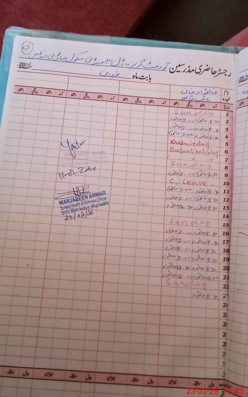| District: MIANWALI | Tehsil: MIANWALI | Markaz: MARI INDUS-FEMALE | Level: Middle | |