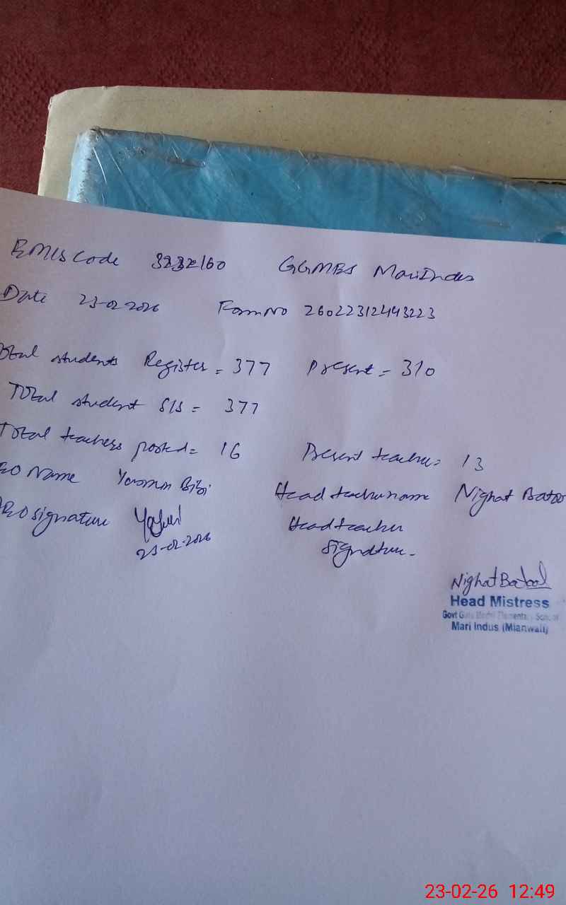 | EMIS Code: 38320160 | Name of School: GMES MARI INDUS | |||