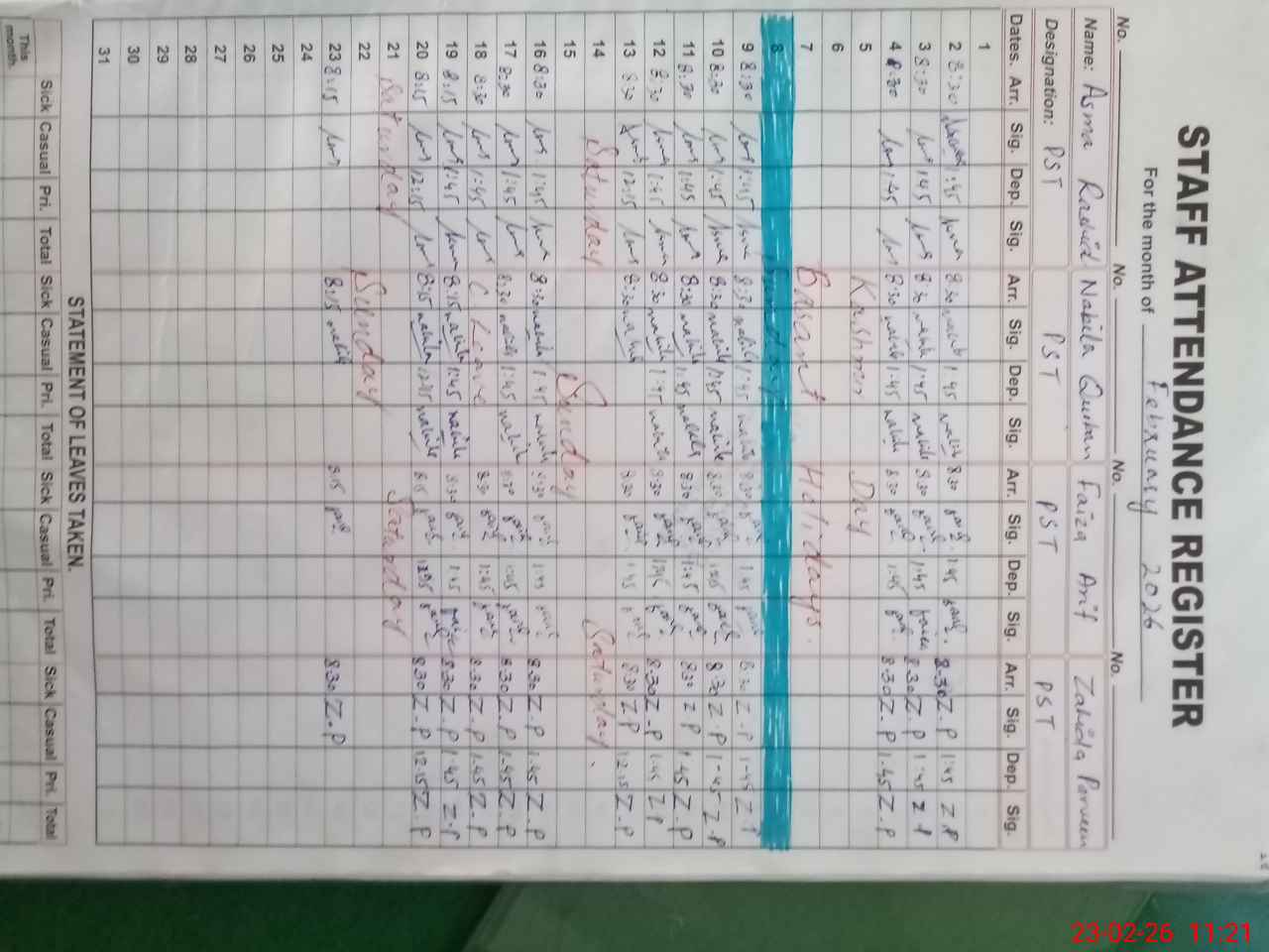 | Name: AS**** RA**** Designation: (School Headmaster's/Headmistress's) PST Phone/Cell Number: 03**** |