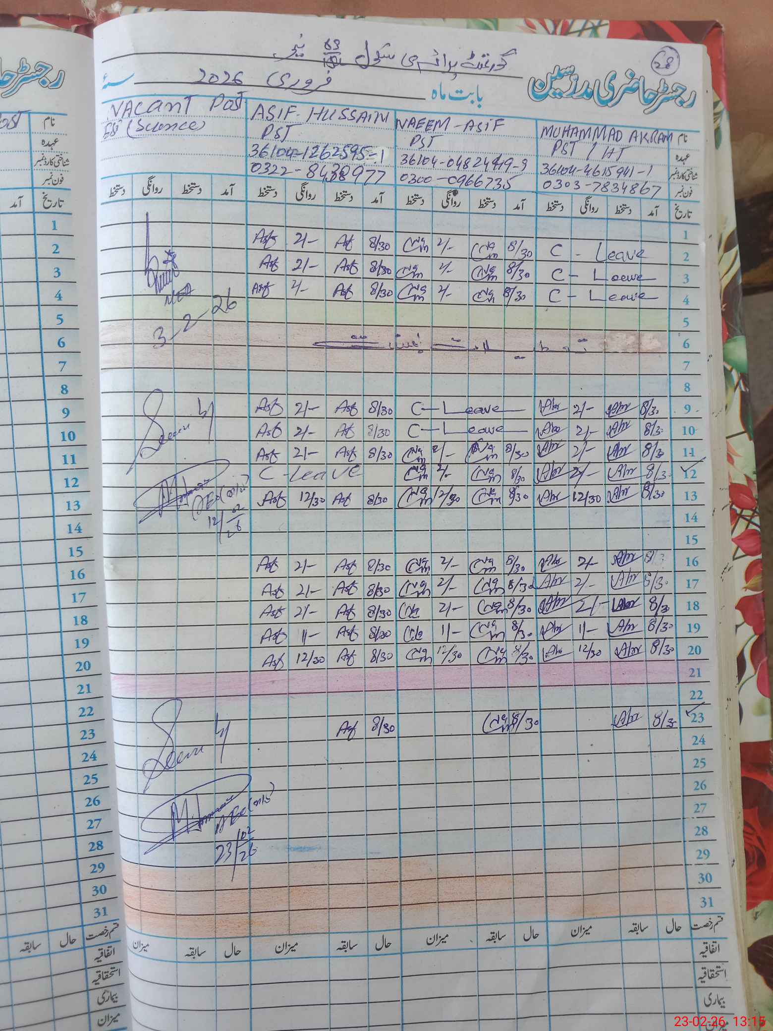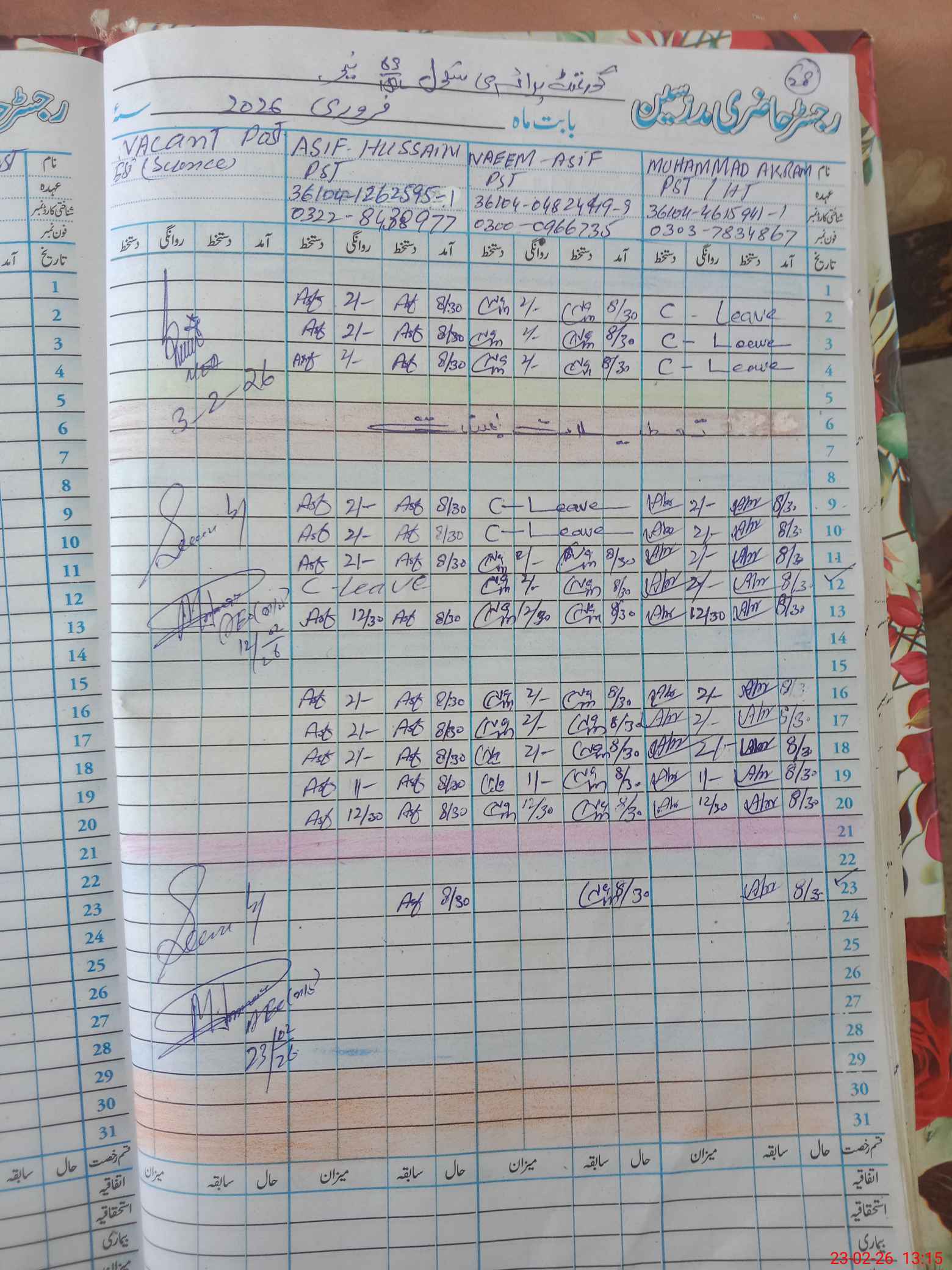 | Name: M.AK**** Designation: (School Headmaster's/Headmistress's) PST Phone/Cell Number: 03**** |