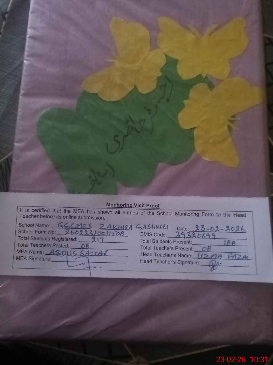 | EMIS Code: 39320699 | Name of School: GGCMES ZAKHIRA GASHKORI | |||