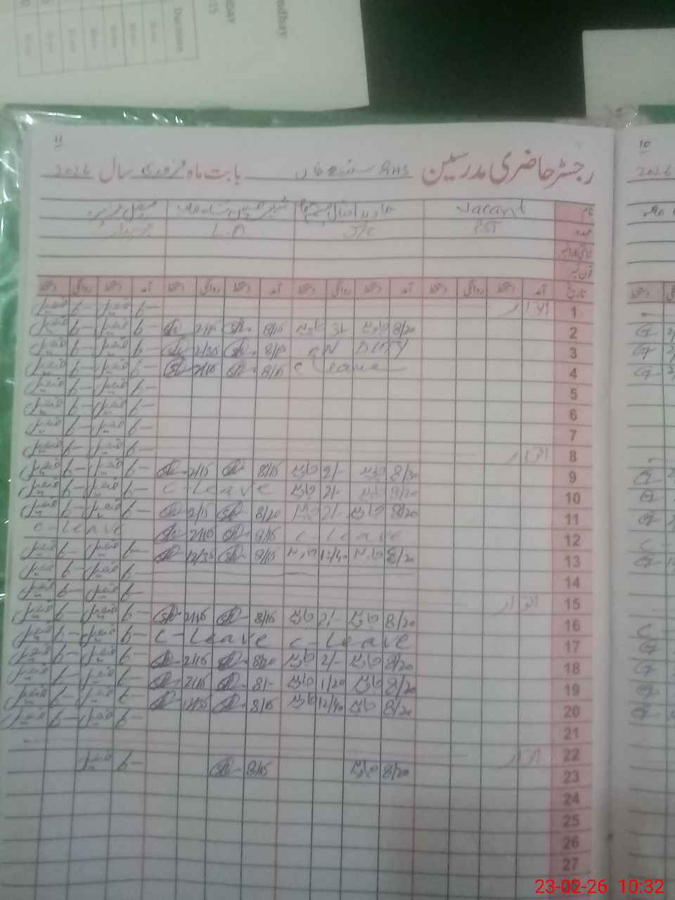 | CNIC | Full Name | Designation | R/C | Absence During Last Calender Month |