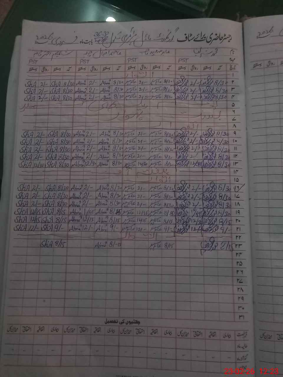 | CNIC | Full Name | Designation | R/C | Absence During Last Calender Month |