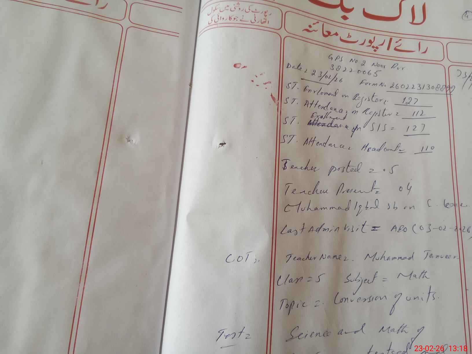 | EMIS Code: 38220065 | Name of School: GPS NO. 2 NOOR PUR THAL | |||
