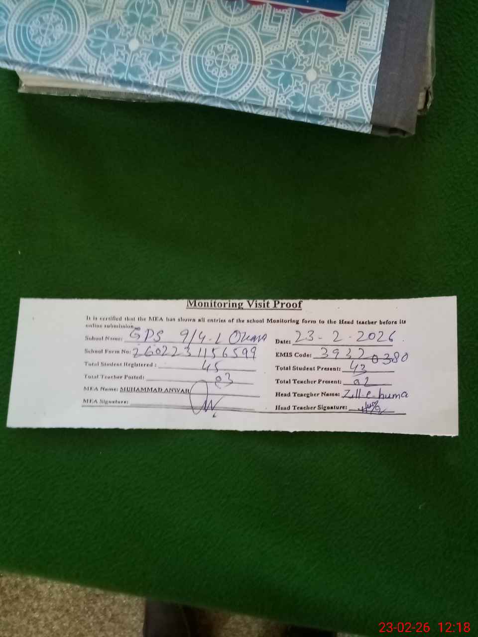 | EMIS Code: 39320380 | Name of School: GPS CHAK NO 9/4-L | |||