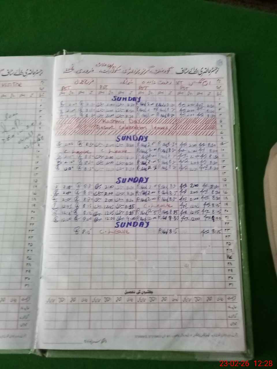 | Leave | Duty | Absent | Maternity | Medical | Ex- Pak |
