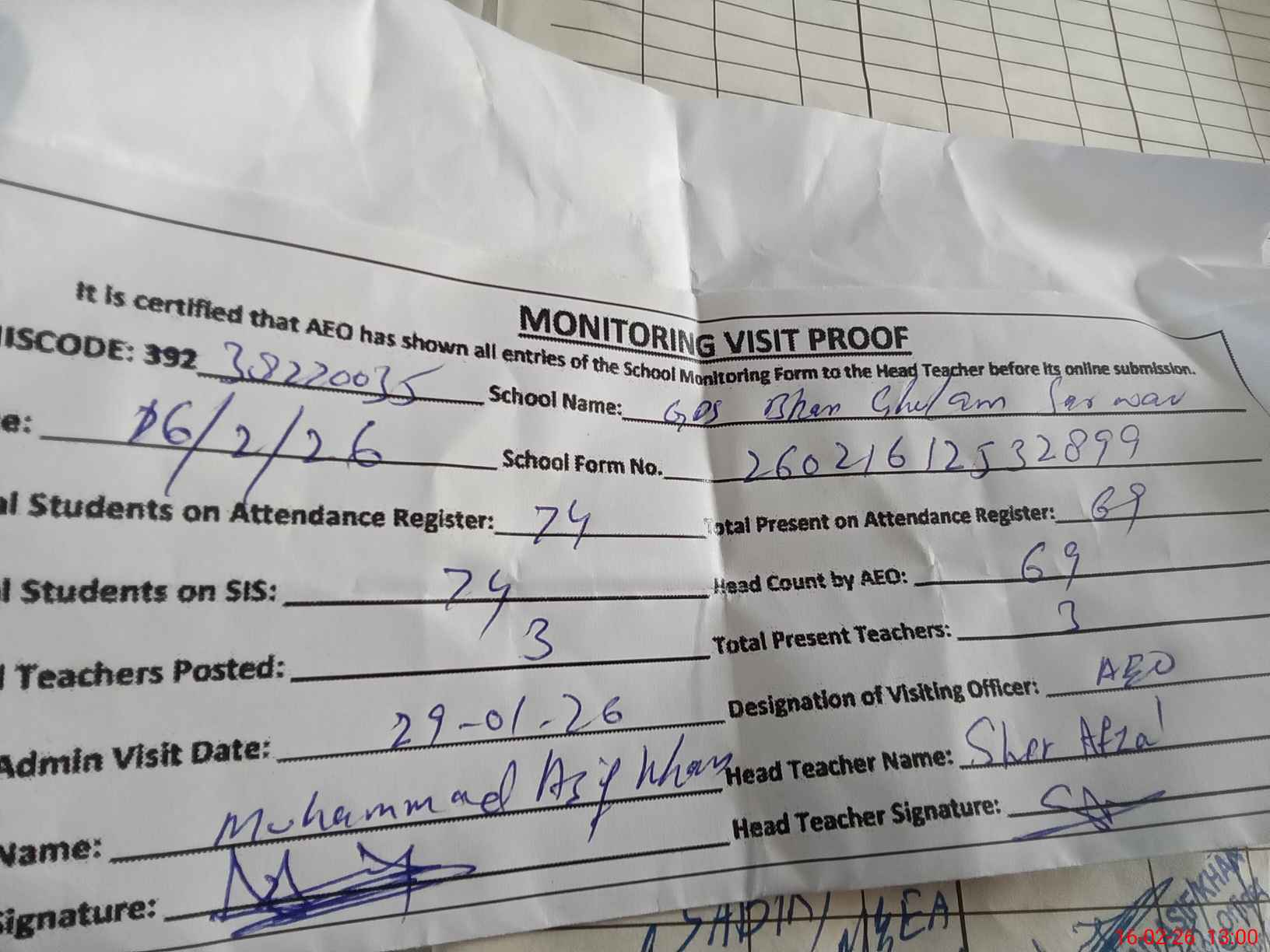 | EMIS Code: 38220035 | Name of School: GPS BHAN GHULAM SARWAR | |||