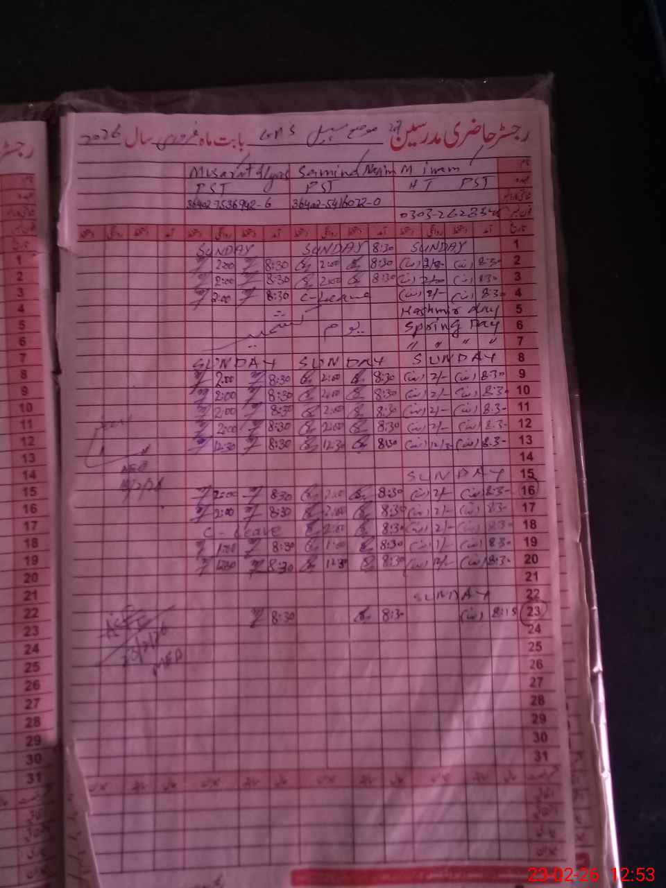 | Name: MU**** IN**** Designation: (School Headmaster's/Headmistress's) PST Phone/Cell Number: 03**** |