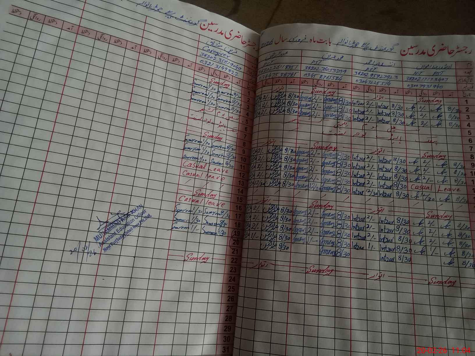 | Name: Ar**** Ra**** Designation: (School Headmaster's/Headmistress's) PST Phone/Cell Number: 03**** |