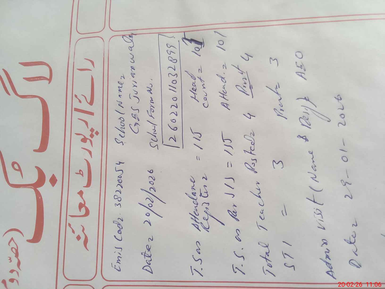 | EMIS Code: 38220054 | Name of School: GES JAURAN WALA | |||