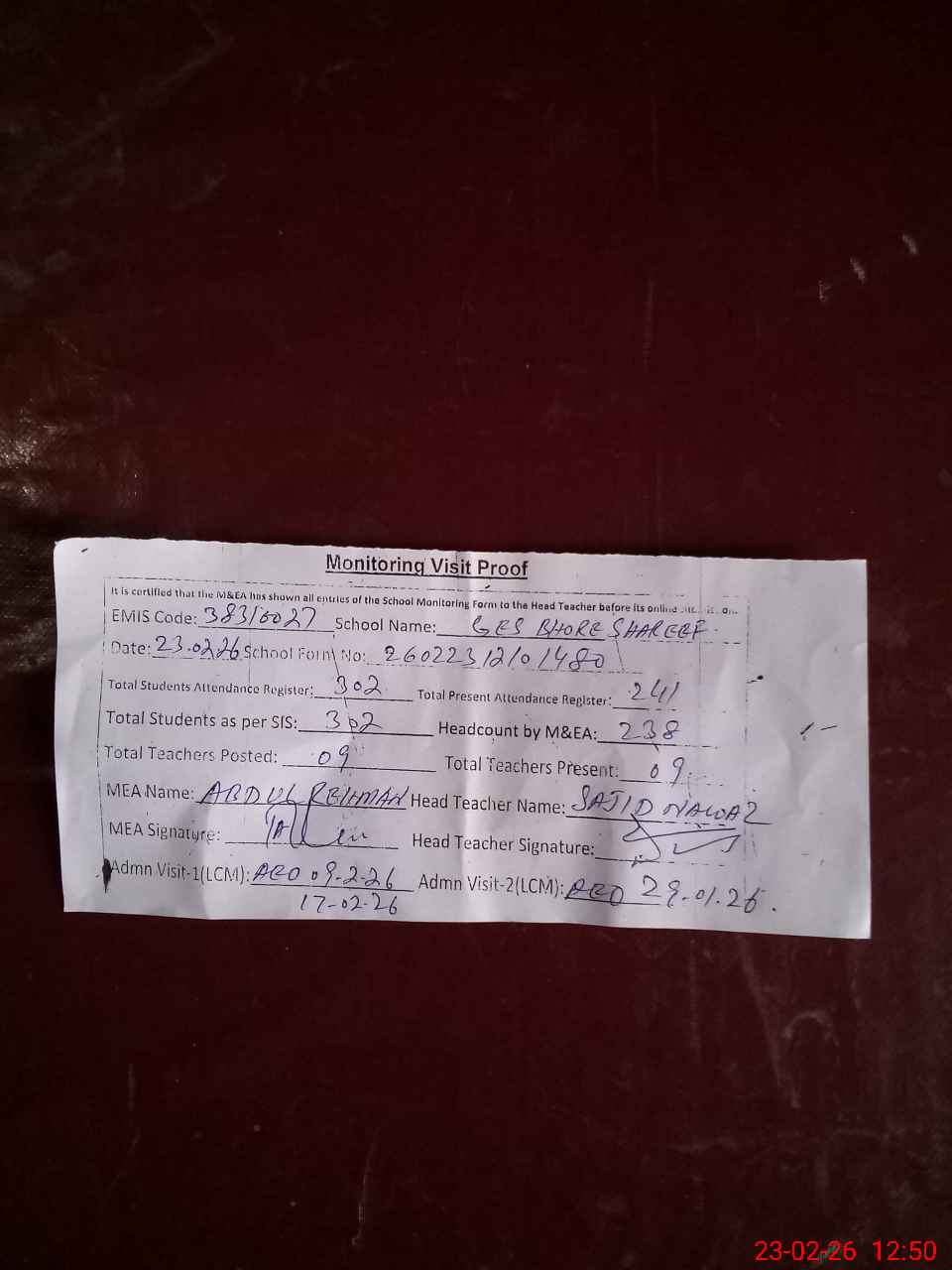 | EMIS Code: 38310027 | Name of School: GES BHORE SHARIF | |||