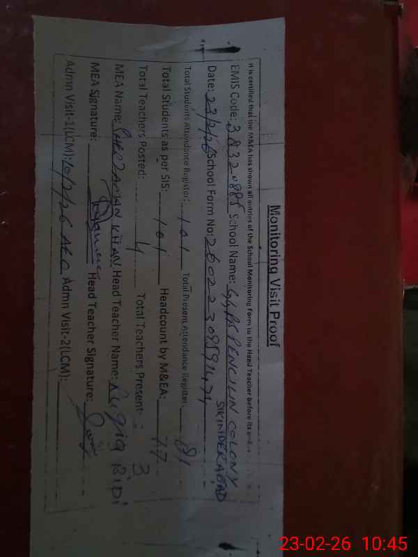| EMIS Code: 38320885 | Name of School: GGPS PENCILIN COLONY SIKANDER ABAD | |||