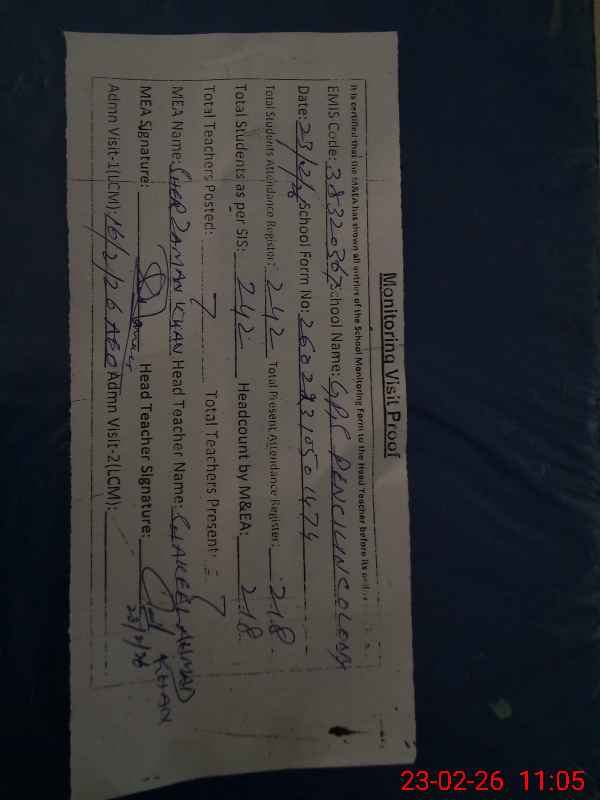 | EMIS Code: 38320367 | Name of School: GPS PENCILLIN COLONY | |||