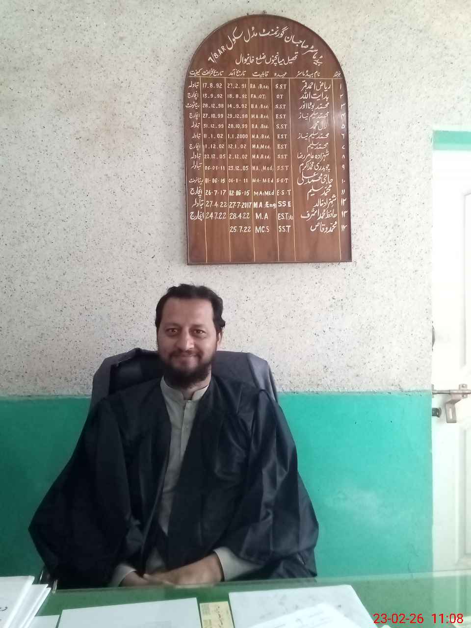 | Name: Mu**** Wa**** Designation: (School Headmaster's/Headmistress's) SST. CS Phone/Cell Number: 03**** |
