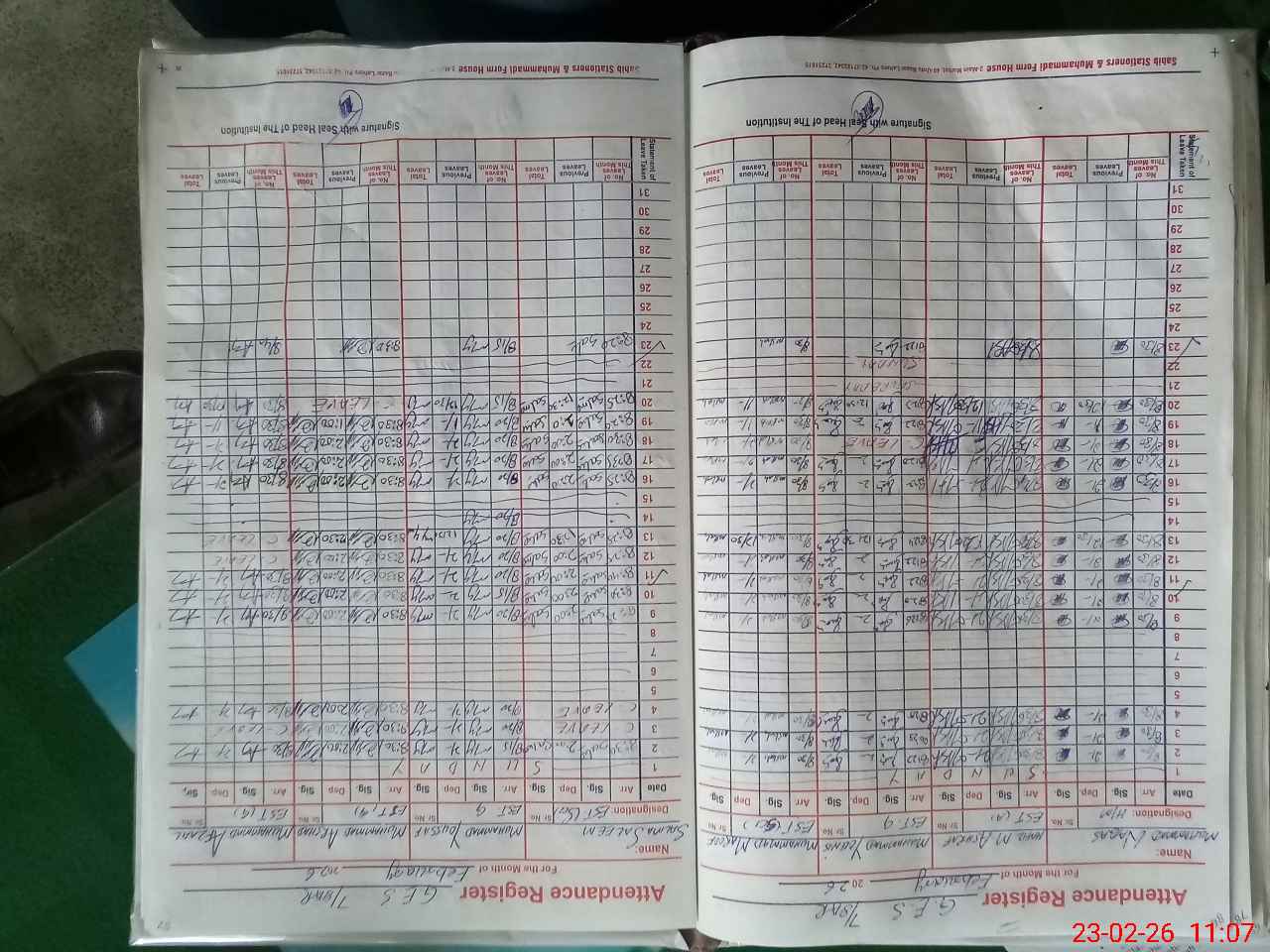 | CNIC | Full Name | Designation | R/C | Absence During Last Calender Month |