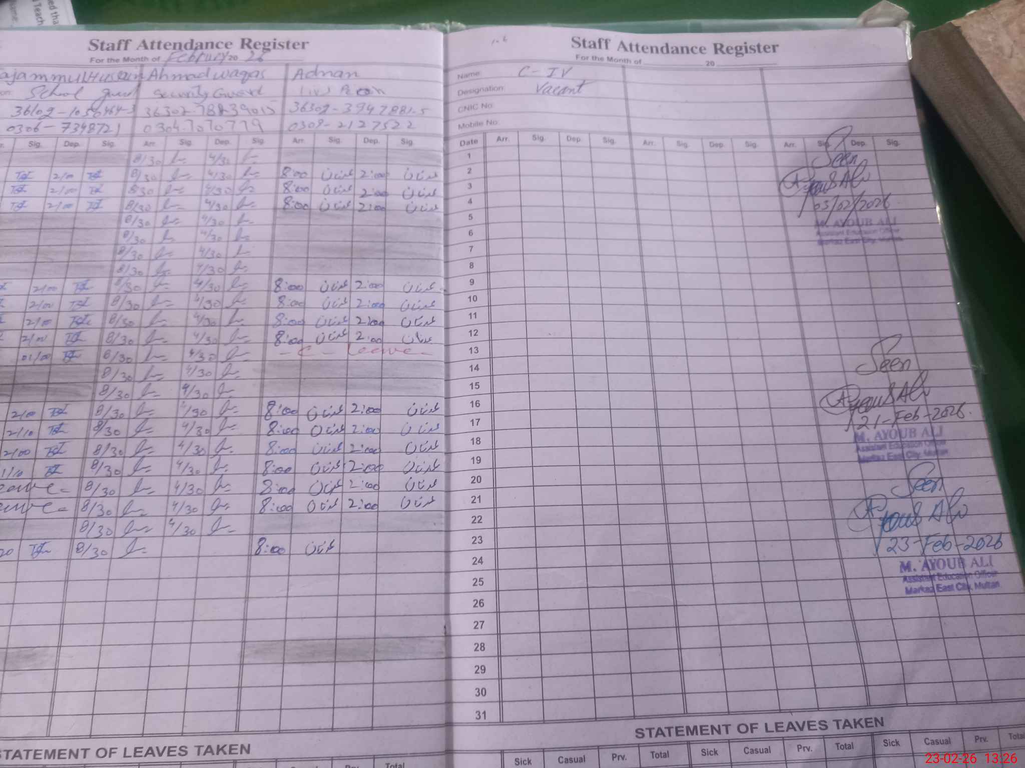 | Name: Mu**** Am**** Designation: (School Headmaster's/Headmistress's) Sst sci Phone/Cell Number: 03**** |