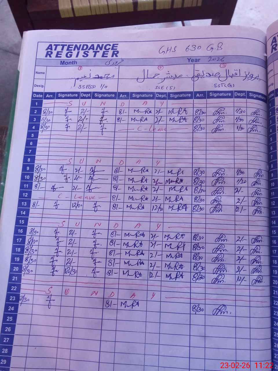 | CNIC | Full Name | Designation | R/C | Absence During Last Calender Month |
