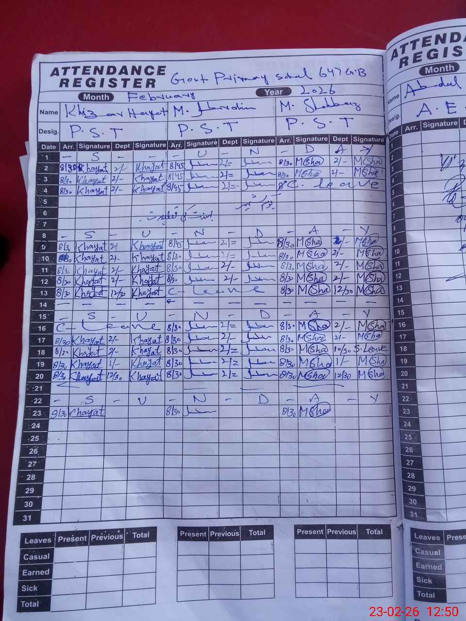 | Leave | Duty | Absent | Maternity | Medical | Ex- Pak |