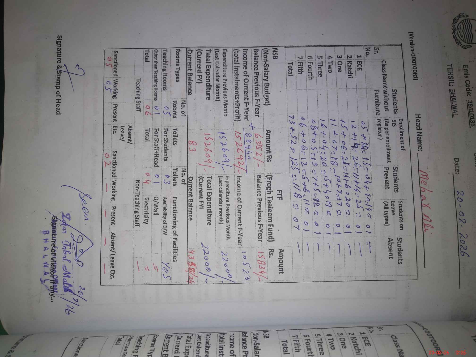 | Certified that this School was Inspected by the Undersigned MEA/DMO Today and the Information Stated Above is as Per Record. | |||||