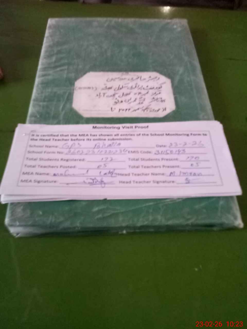 | Attendance Register | Head Teacher | MEA with School | Visit Proof |