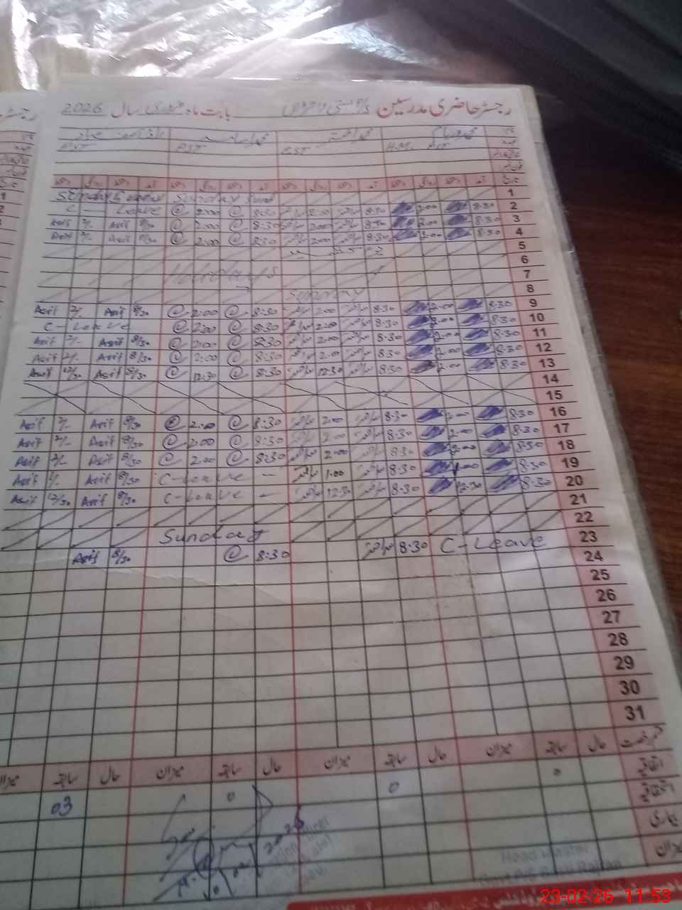| 31**** | Mu**** Wa**** | PST Arts | Regular | 0 | 0 | 0 | 0 | 0 | 0 | 0 | 0 | 0 | Casual |